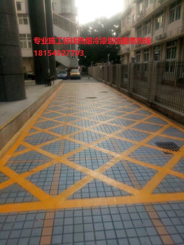 4、底漆干后方可進行熱熔涂料,在涂標線的同時撒布反光玻璃珠,增加夜間識別性,標線厚度1.5— 1.8MM。