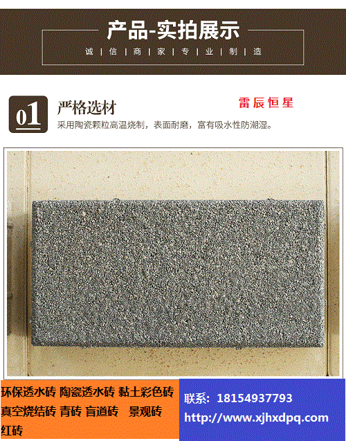 新疆雷辰恒星有限公司,成立于2015年,是*從事海綿城市建設(shè)的企業(yè)。公司擁有國(guó)內(nèi)*的透水系列產(chǎn)品生產(chǎn)設(shè)備,透水產(chǎn)品膠結(jié)料生產(chǎn)車間、透水磚生產(chǎn)車間及承接海綿城市建設(shè)工程的全套施工工具、設(shè)備。產(chǎn)品主要有:彩色透水磚:透水磚與傳統(tǒng)的彩色路面磚不同,它呈多孔、蜂窩狀結(jié)構(gòu),本身有自然積存、自然滲透、自然凈化功能。它能有效的解決城市熱島效應(yīng)、除塵降噪,是海綿城市建設(shè)不可缺少的路面材料。聯(lián)系熱線18154927793李經(jīng)理或者0991-6867420.