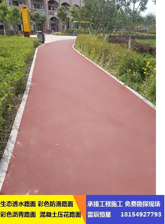彩色防滑路面通過道路顏色的不同,提示駕駛者在規(guī)定的路面上行駛,從而避免了不同車輛的混行;提示駕駛人員前方的危險路段,并通過提供高摩擦力的面層來實現(xiàn)很好防滑效果;駕駛員駛入上述路段可以提前降低速度,并在緊急情況下,縮短剎車距離,避免惡性交通事故。彩色路面防滑系統(tǒng)是一種樹脂基路面防滑系統(tǒng),包括特殊配方的樹脂基黏合劑和各種不同規(guī)格的骨料,以準確的數(shù)量涂敷于各種路面。此種路面不僅對景觀美化和道路安全方面有著明顯的改進,同時因其面層耐磨耗,可以對普通路面起到延長壽命的作用。彩色防滑路面的引入,對改善我國交通惡化的現(xiàn)狀,有著積極深遠的意義。