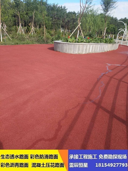 冷涂型彩色防滑路面材料的類型有丙烯酸型、環(huán)氧型,聚氨酯型等,其為液態(tài)。施工時,無需大型設備,只需將基料與固化劑按比例混合后,用滾涂的方式涂鋪于路面,并添加防滑沙層,經過化學交聯反應,快速固化成堅韌的漆膜,形成彩色防滑路面。 施工簡單,快速簡便,目前已經成為市場主要的選擇對象。其中聚氨酯型由于其綜合性能更有優(yōu)勢,所以在國內目前的市場占有率*高。